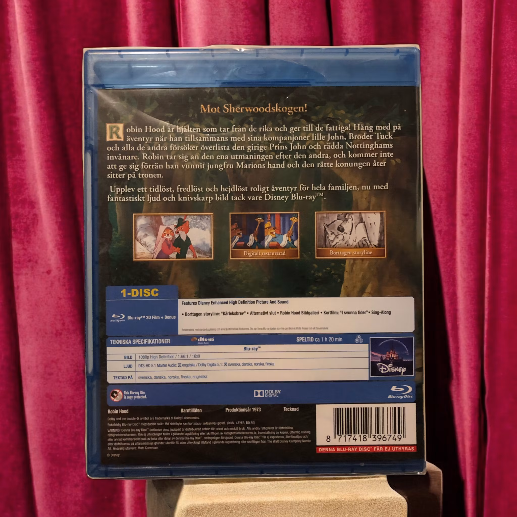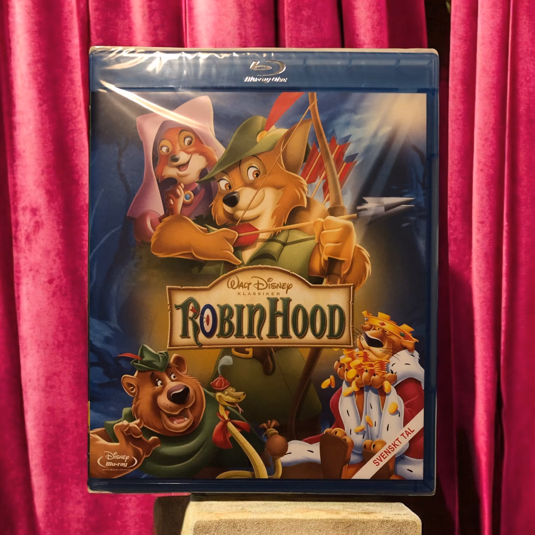 "Robin Hood" är en animerad film från 1973 som tar sig an den klassiska legenden om Robin Hood och hans band av brottslingar som kämpar mot den korrupta sheriffen av Nottingham och den girige prins John. I denna version av berättelsen porträtteras Robin Hood som en charmig räv och hans följeslagare inkluderar Little John, en björn, och Lady Marian, en räv.