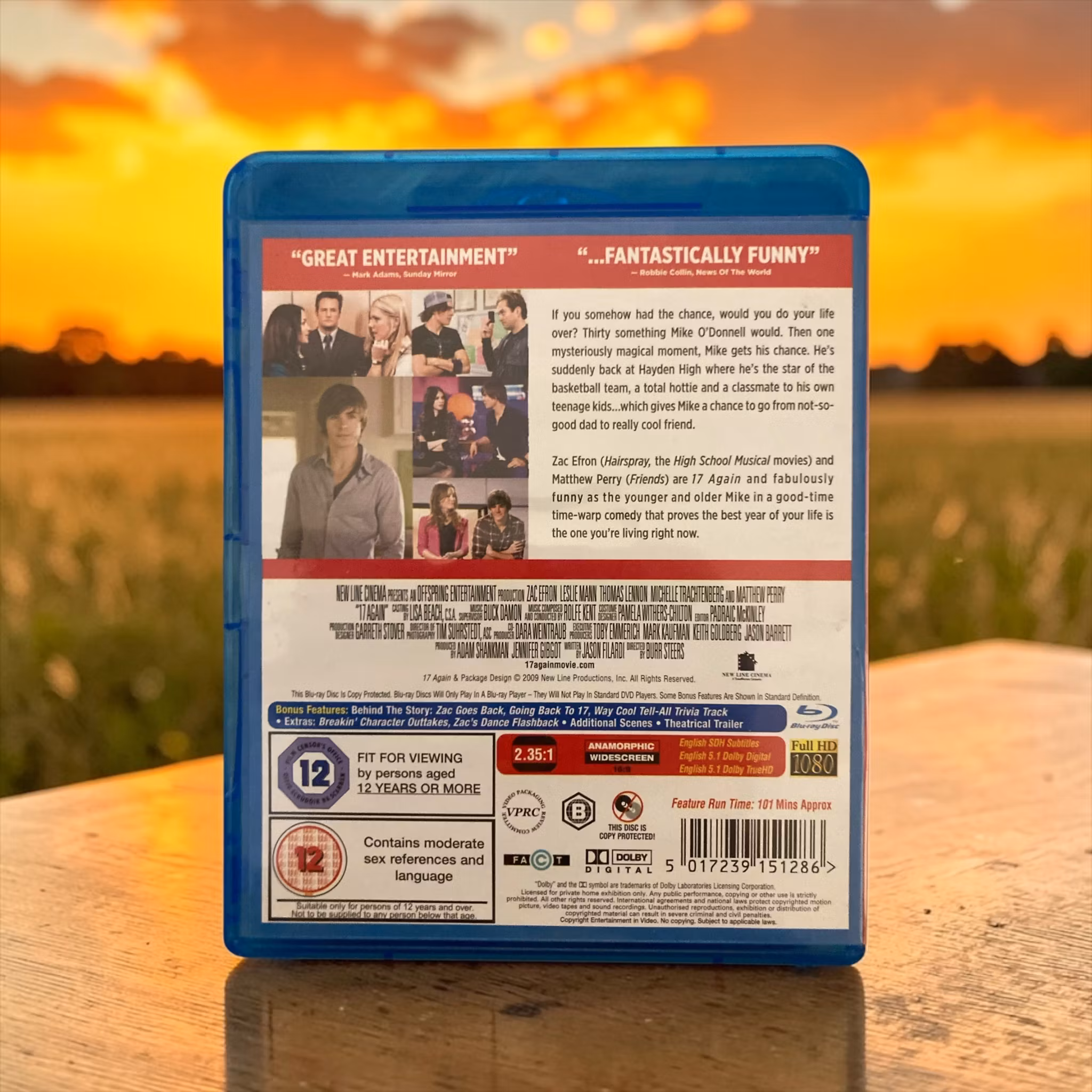 17 Again är en charmig komedi från 2009 som följer den 37-årige Mike O'Donnell (Matthew Perry), som lever ett liv fullt av ånger och missnöje över sin oförverkligade dröm och sitt nuvarande tråkiga vardagsliv. När Mike är på väg att avsluta sitt livsverk i ett gammalt gym, får han en magisk chans att återvända till sin ungdomsår som 17-åring (spelad av Zac Efron) genom en mystisk händelse.