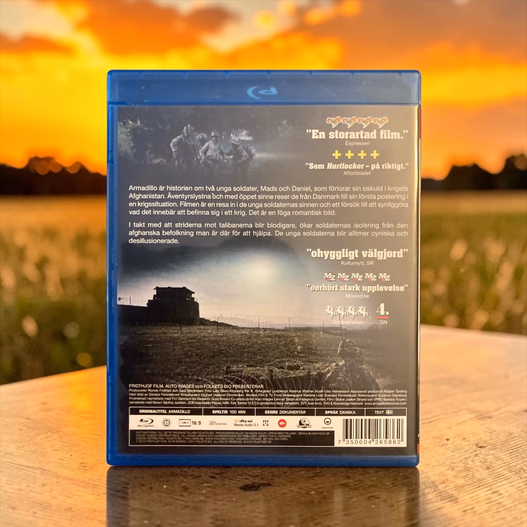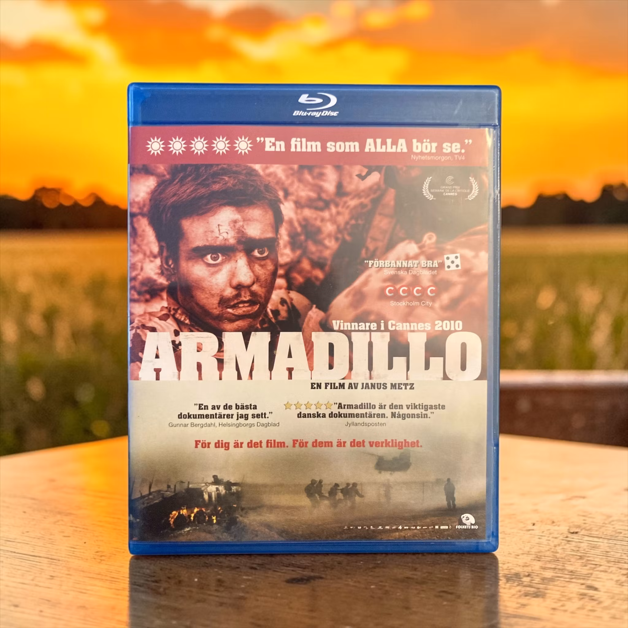 Handling: "Armadillo" är en dansk dokumentärfilm från 2010, regisserad av Janus Metz Pedersen. Filmen följer en grupp danska soldater från Armadillo-basen i Helmandprovinsen, Afghanistan. Genom dokumentärens linser får vi följa soldaternas vardag och deras insatser i ett av världens farligaste krigsområden.