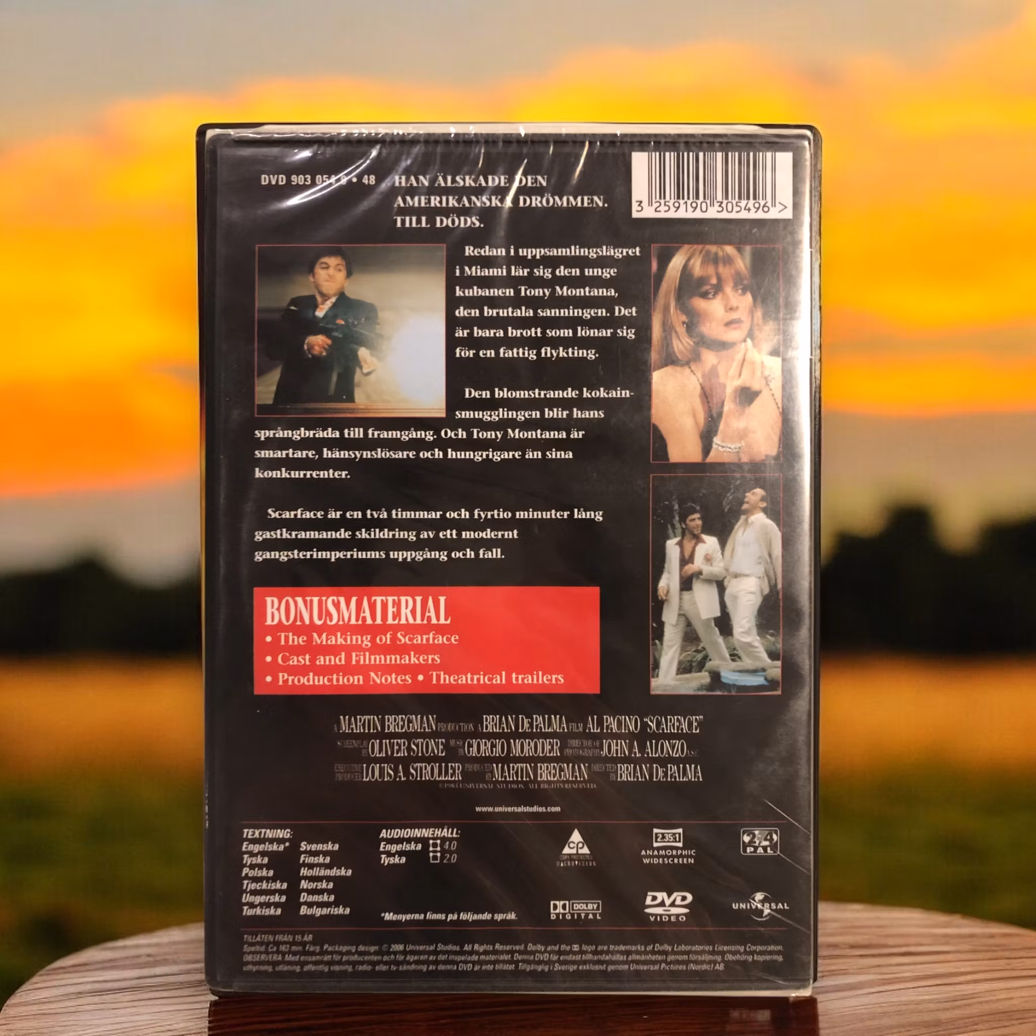 "Scarface" är känd för Al Pacinos ikoniska rolltolkning som Tony Montana och för Brian De Palmas intensiva regi. Filmen har blivit en kultklassiker och är berömd för sina våldsamma scener, karaktärsdrivna drama och sitt porträtt av den mörka sidan av den amerikanska drömmen.