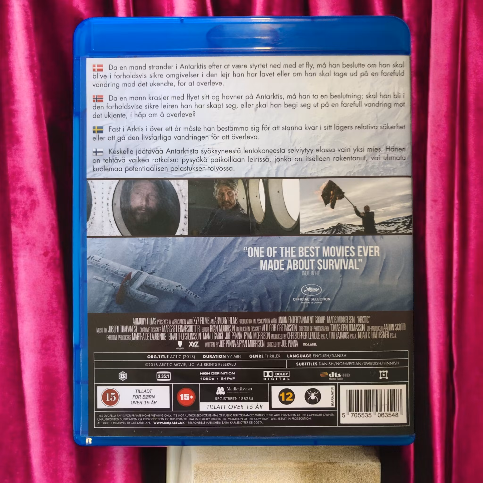 "Arctic" är en överlevnadsdrama som följer Overgård (Mads Mikkelsen), en man som kraschat i Arktis och är fast i det karga landskapet efter en olycka. När en räddningsoperation misslyckas och han måste fatta beslut om att ge sig ut på en riskfylld färd för att överleva. Filmen fokuserar på hans kamp mot de extrema väderförhållandena, svält och isolering, samt hans strävan att rädda en skadad kvinna han hittar i området. "Arctic" är känd för sina realistiska skildringar av överlevnad och Mads Mikkelsens starka prestation i huvudrollen.