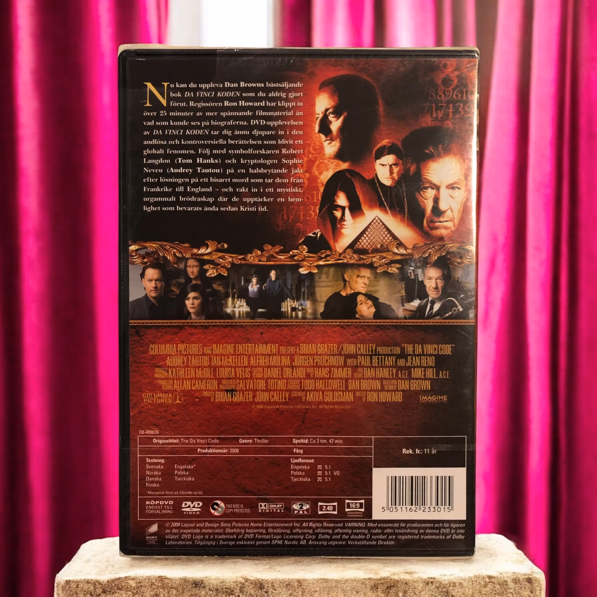 Da Vinci-koden följer professor Robert Langdon (Tom Hanks) som involveras i en mystisk mordutredning på Louvren. Tillsammans med kryptologen Sophie Neveu (Audrey Tautou) avtäcker de en serie hemligheter som rör kristendomen och konstverk av Leonardo da Vinci. Filmen kombinerar historiska gåtor med en spännande berättelse, vilket gör den till en fängslande thriller som håller publiken på spänn från början till slut.