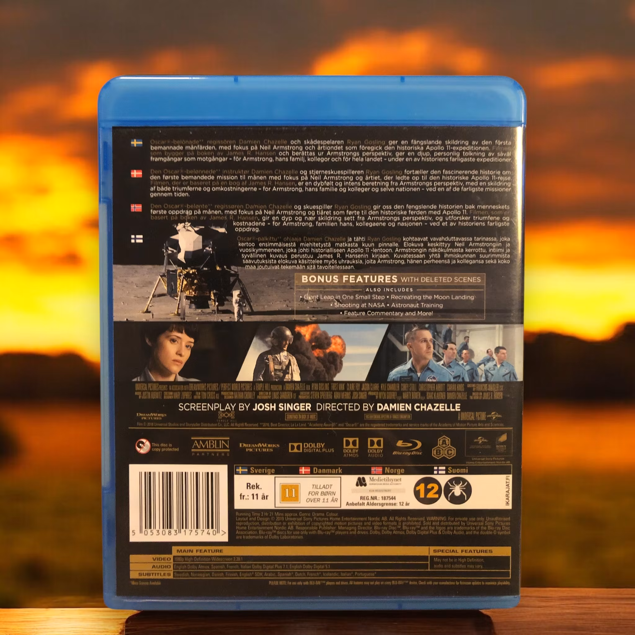 Titel:First Man Skådespelare:Ryan Gosling, Claire Foy, Jason Clarke Regissör:Damien Chazelle IMDb-betyg:7.3 Beskrivning:Denna biografiska drama fokuserar på Neil Armstrongs (Ryan Gosling) liv och karriär, från hans tid som testpilot till hans historiska månlandning 1969 som den första människan att sätta foten på månen. Filmen utforskar de personliga och professionella utmaningarna Armstrong stod inför, samt de offer och risker som följde med att vara en pionjär inom rymdutforskning.