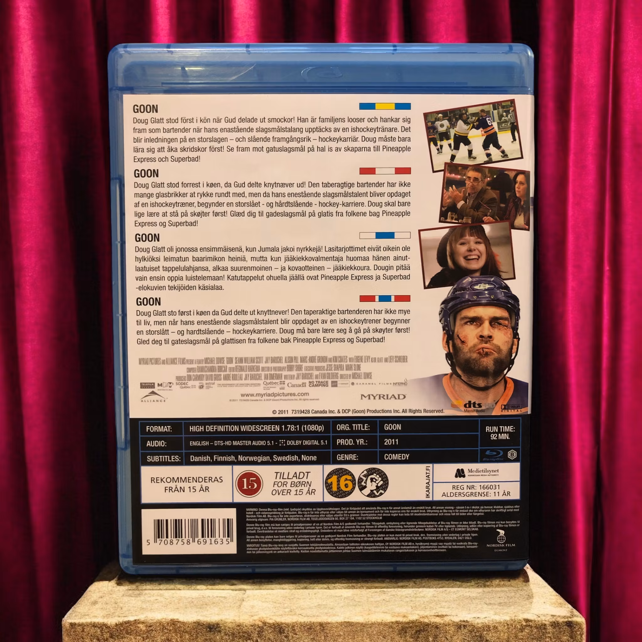 Goon (2011) är en sportkomedi som följer Doug Glatt (Seann William Scott), en snäll och välmenande man som arbetar som barman men drömmer om att bli en del av ishockeyvärlden. Efter att ha visat sin styrka i ett bråk på en ishockeymatch får Doug en chans att spela som en "enforcer" för ett mindre hockeylag, Halifax Highlanders.