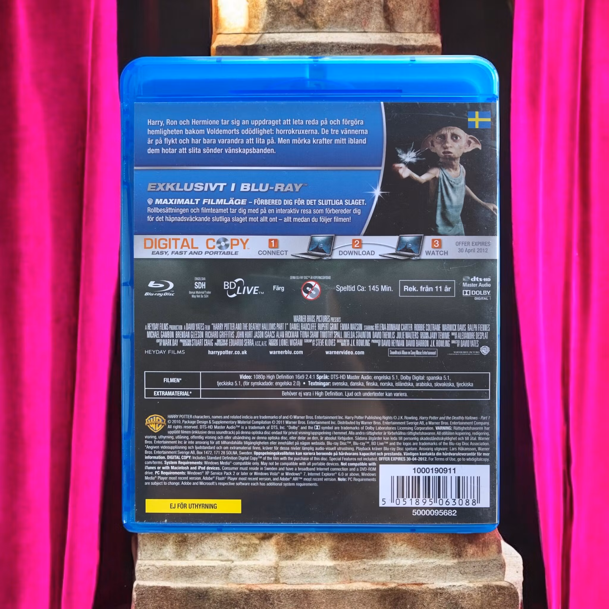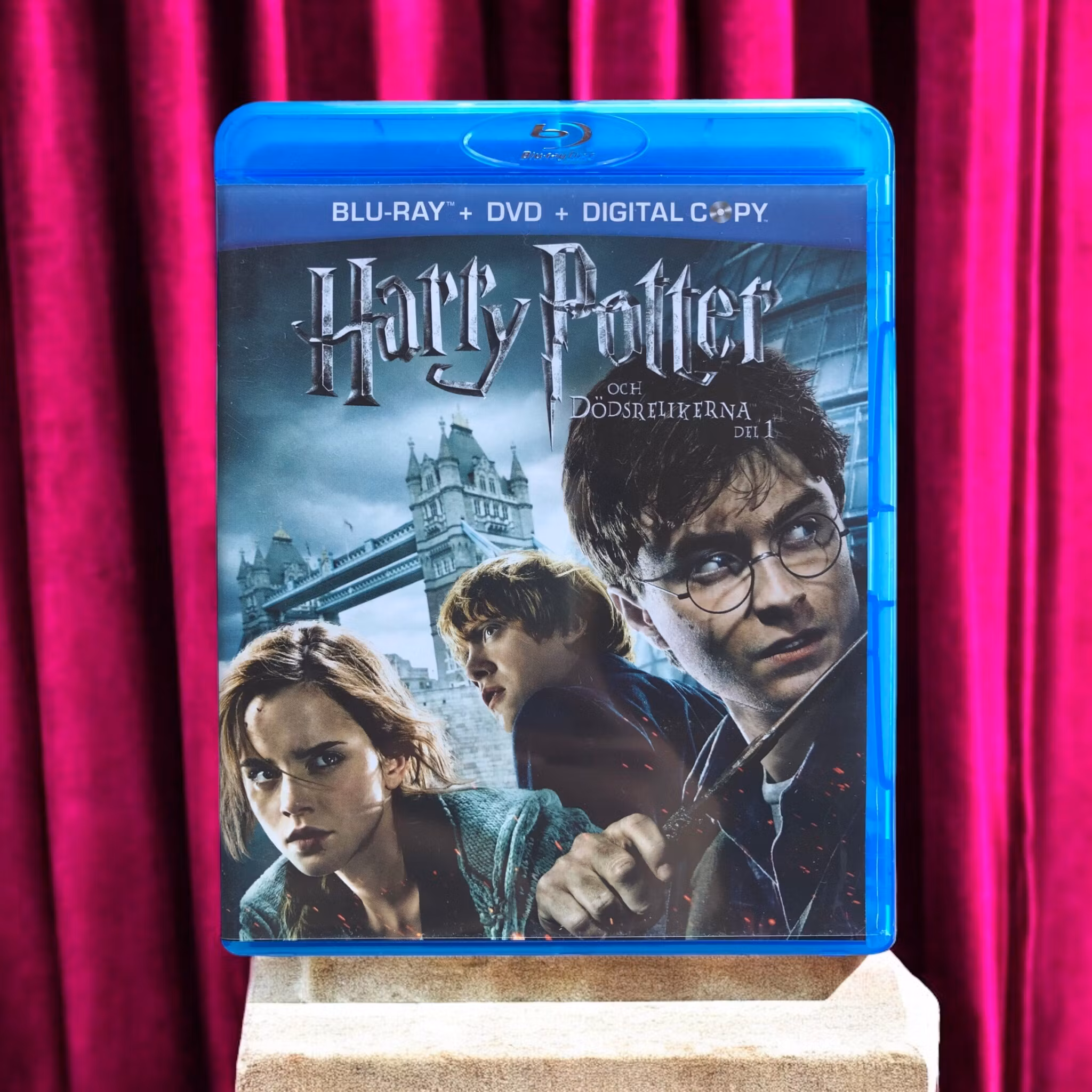 "Harry Potter och Dödsrelikerna – Del 1" är den sjunde filmen i Harry Potter-serien, regisserad av David Yates. Filmen följer Harry Potter (Daniel Radcliffe), Hermione Granger (Emma Watson) och Ron Weasley (Rupert Grint) när de ger sig ut på en farofylld resa för att hitta och förstöra Lord Voldemorts (Ralph Fiennes) horrokruxer, vilka är nyckeln till hans odödlighet.