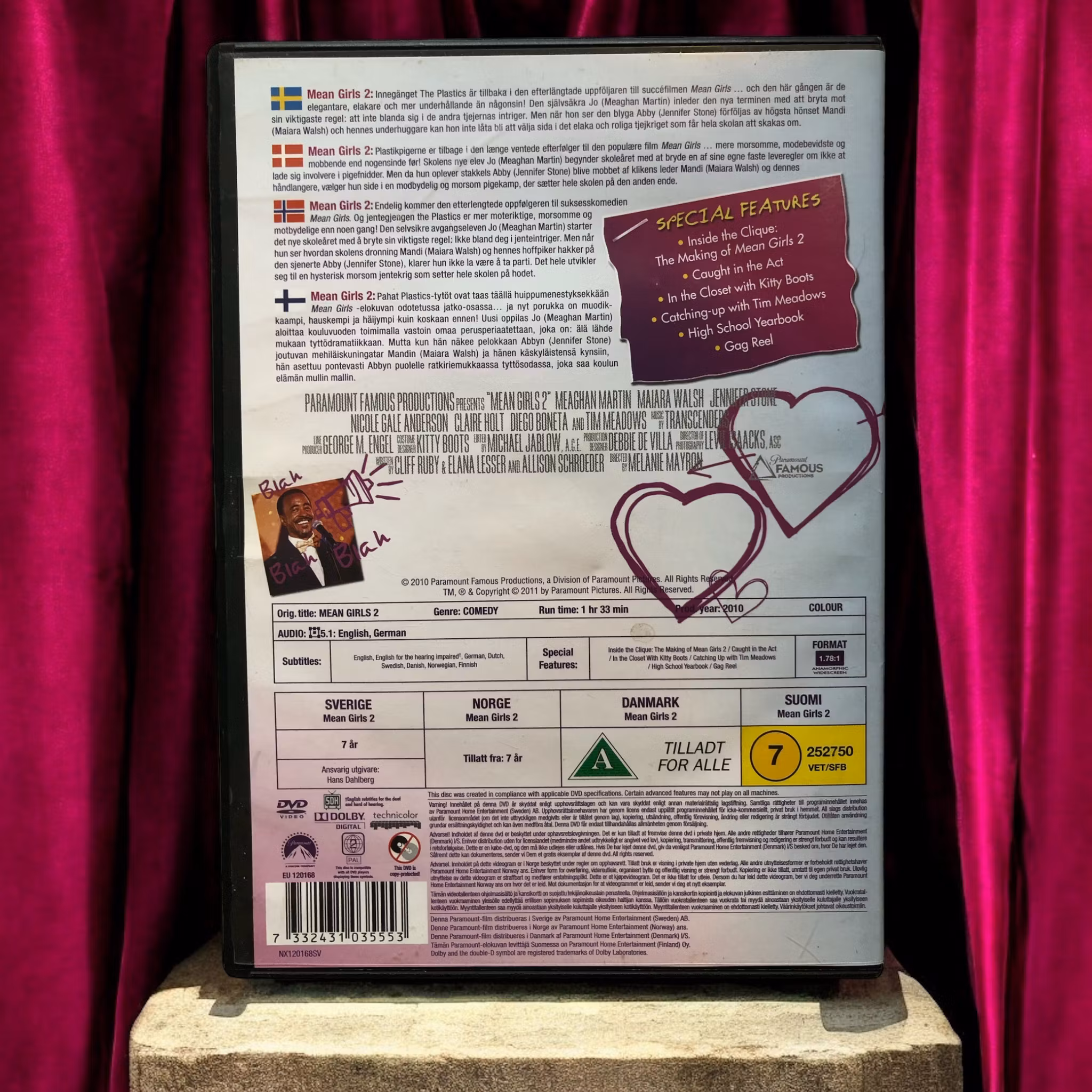 "Mean Girls 2" är en uppföljare till den populära filmen "Mean Girls" från 2004. Filmen följer Jo Mitchell (spelad av Meaghan Martin), en ny student på North Shore High School som snabbt blir indragen i skolans sociala hierarki. Hon stöter på det ledande tjejgänget, "The Plastics", och måste navigera genom skolans sociala utmaningar och konflikter för att hitta sin plats. Medan filmen försöker återskapa den ursprungliga filmens skarpa humor och sociala observationer, har den fått blandade recensioner och anses ofta som en svagare uppföljare.