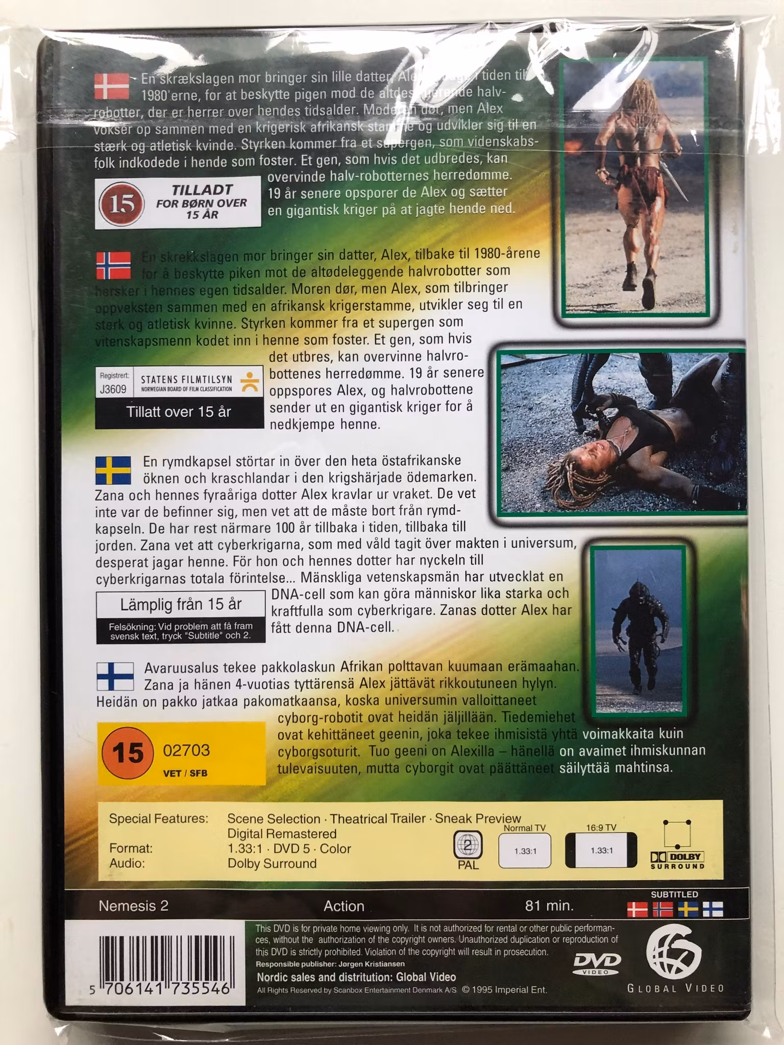 "Nemesis II: Nebula" är en actionfylld sci-fi film från 1995, som fungerar som en uppföljare till den kultklassade "Nemesis" från 1992. Filmen utspelar sig 73 år efter händelserna i den första filmen, i en dystopisk framtid där mänskligheten står inför utrotning. Genetiska experiment har skapat en hybrid av människa och cyborg, vilket ger upphov till en ny form av soldater.
