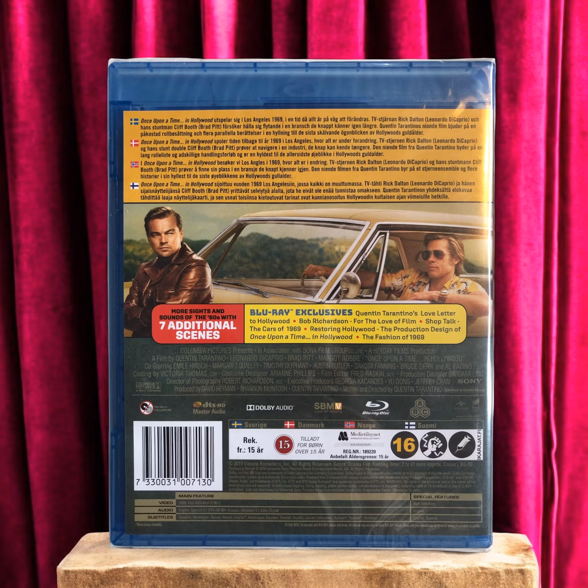 "Once Upon a Time In Hollywood" är en kärleksfull hyllning till 1960-talets Hollywood, regisserad av Quentin Tarantino. Filmen utforskar livet för två huvudkaraktärer - TV-stjärnan Rick Dalton (spelad av Leonardo DiCaprio) och hans stuntman Cliff Booth (spelad av Brad Pitt) - medan de navigerar genom en föränderlig filmbransch och samtidigt försöker hitta sin plats i en värld som de känner sig alltmer främmande i.