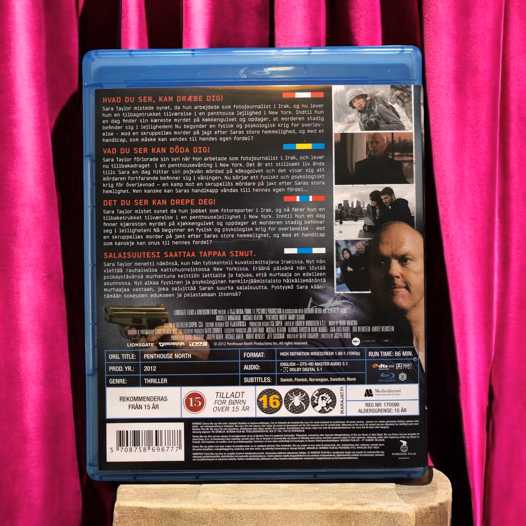 Penthouse North är en thriller som utspelar sig i en lyxig lägenhet på Manhattan. Filmen följer Kate (Michelle Monaghan), en journalist som bor i en exklusiv penthouse-lägenhet och återhämtar sig efter en traumatisk bilolycka som lämnat henne blind. Hennes värld förändras drastiskt när två inbrottstjuvar, spelade av Michael Keaton och Barry Sloane, bryter sig in i lägenheten i jakt på en hemlig och värdefull samling av smycken.