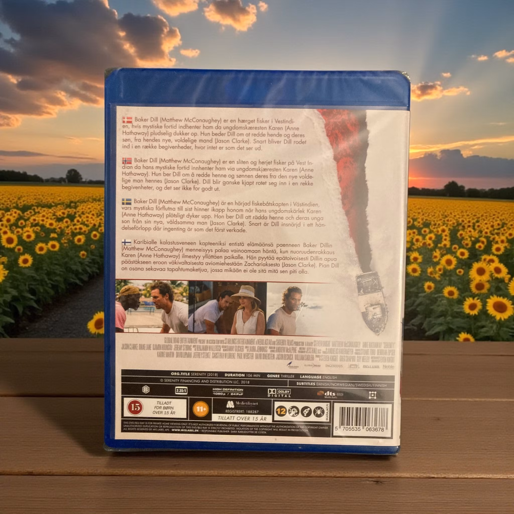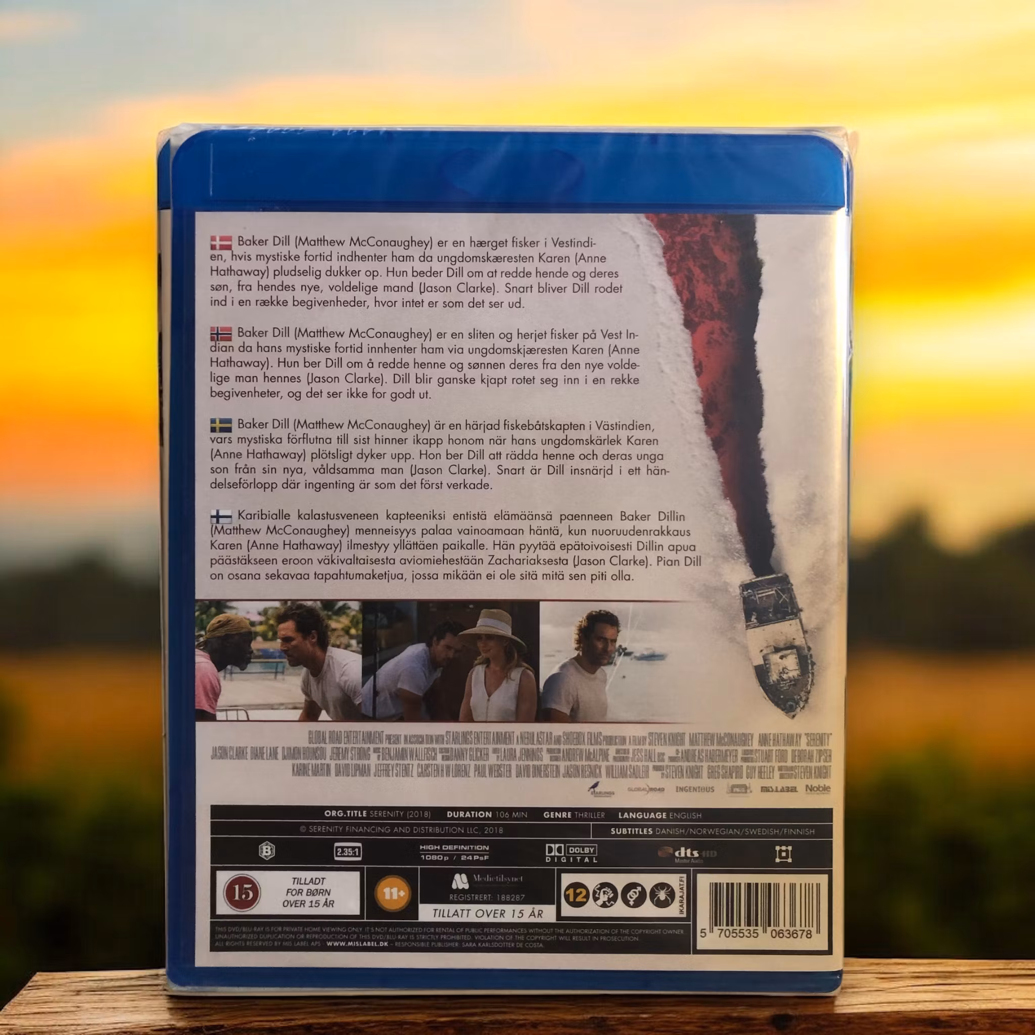 Titel:Serenity Skådespelare:Matthew McConaughey, Anne Hathaway, Jason Clarke Regissör:Steven Knight IMDb-betyg:5.8 Beskrivning:Denna thriller följer en fiskebåtskapten (Matthew McConaughey) som blir indragen i en farlig värld av brott och manipulation när hans ex-fru (Anne Hathaway) ber om hans hjälp att fly från sin nya, våldsamma man. Filmen är fylld med oväntade vändningar och spänning.
