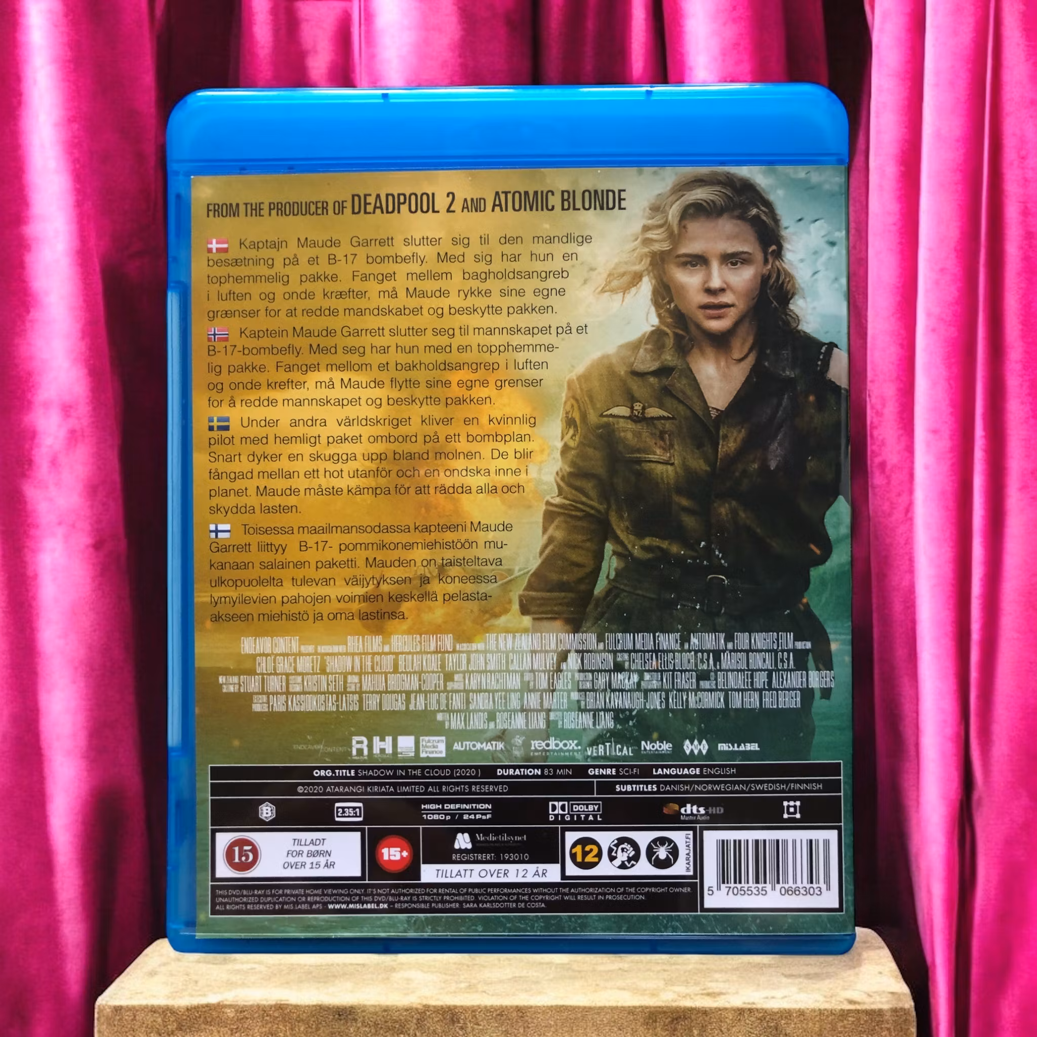 Shadow in the Cloud är en intensiv thriller som utspelar sig under andra världskriget och följer Maude Garrett (Chloë Grace Moretz), en kvinnlig pilot som ska flyga en B-17-bombplan. Maude har en hemlighet: hon bär ett mystiskt paket som är av största vikt. Under flygningen konfronteras besättningen med både yttre hot och inre konflikter, men det verkliga hotet kommer från en oväntad källa.