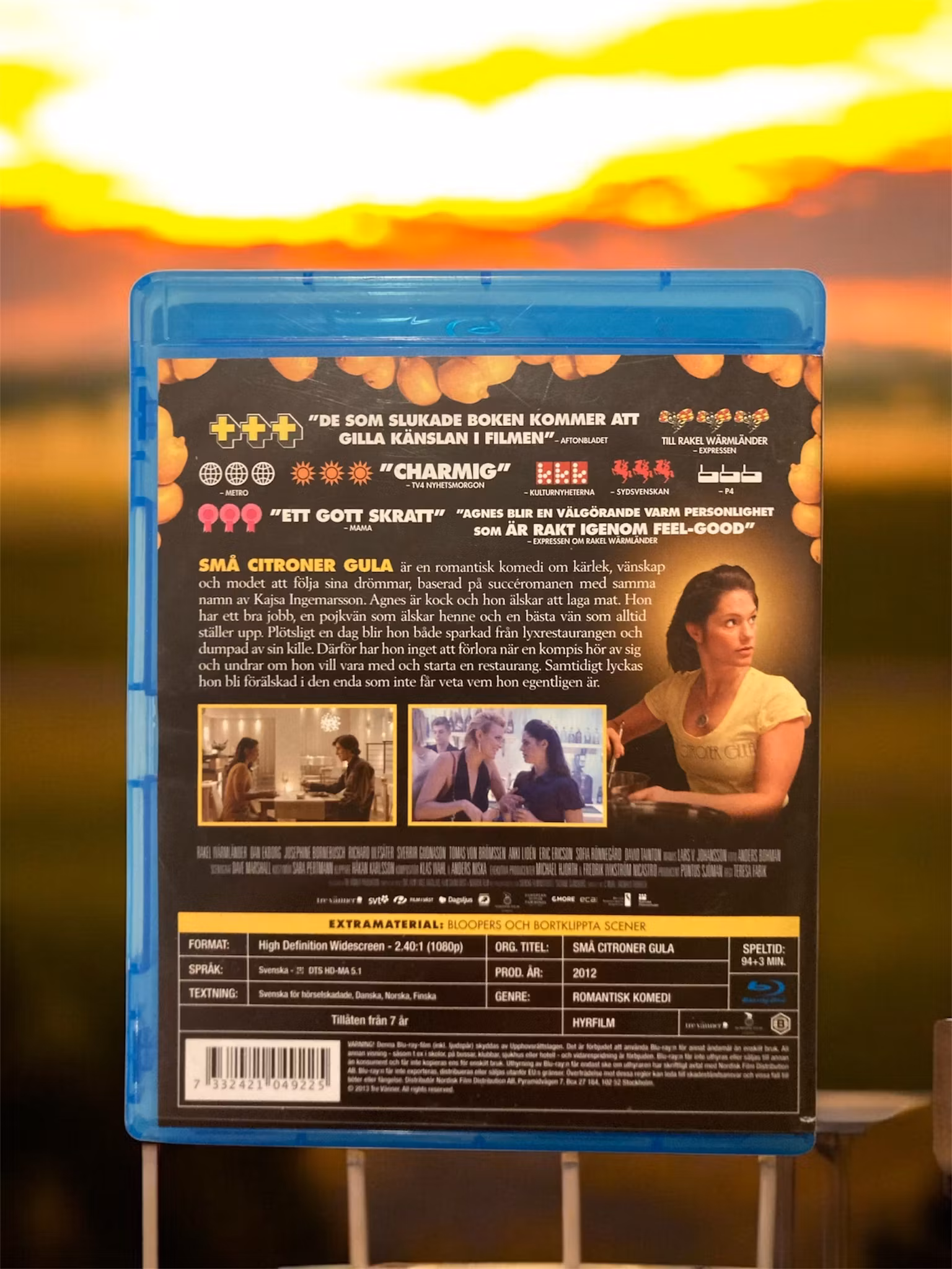 "Små citroner gula" är en svensk romantisk komedi baserad på Ulf Starks bok med samma namn. Filmen följer Elin (Rakel Wärmlander), en kvinna som arbetar på en matkritisk tidning och som har en passion för matlagning. När hon träffar och inleder en romans med en framstående matkritiker, Björn (Sverrir Gudnason), finner hon sig själv i en värld full av kulinariska tävlingar och matrelaterade utmaningar. Filmen skildrar hur Elins liv och karriär sätts på prov när hon måste balansera sitt professionella och personliga liv samtidigt som hon navigerar i en värld av gastronomiska högtider och motgångar.