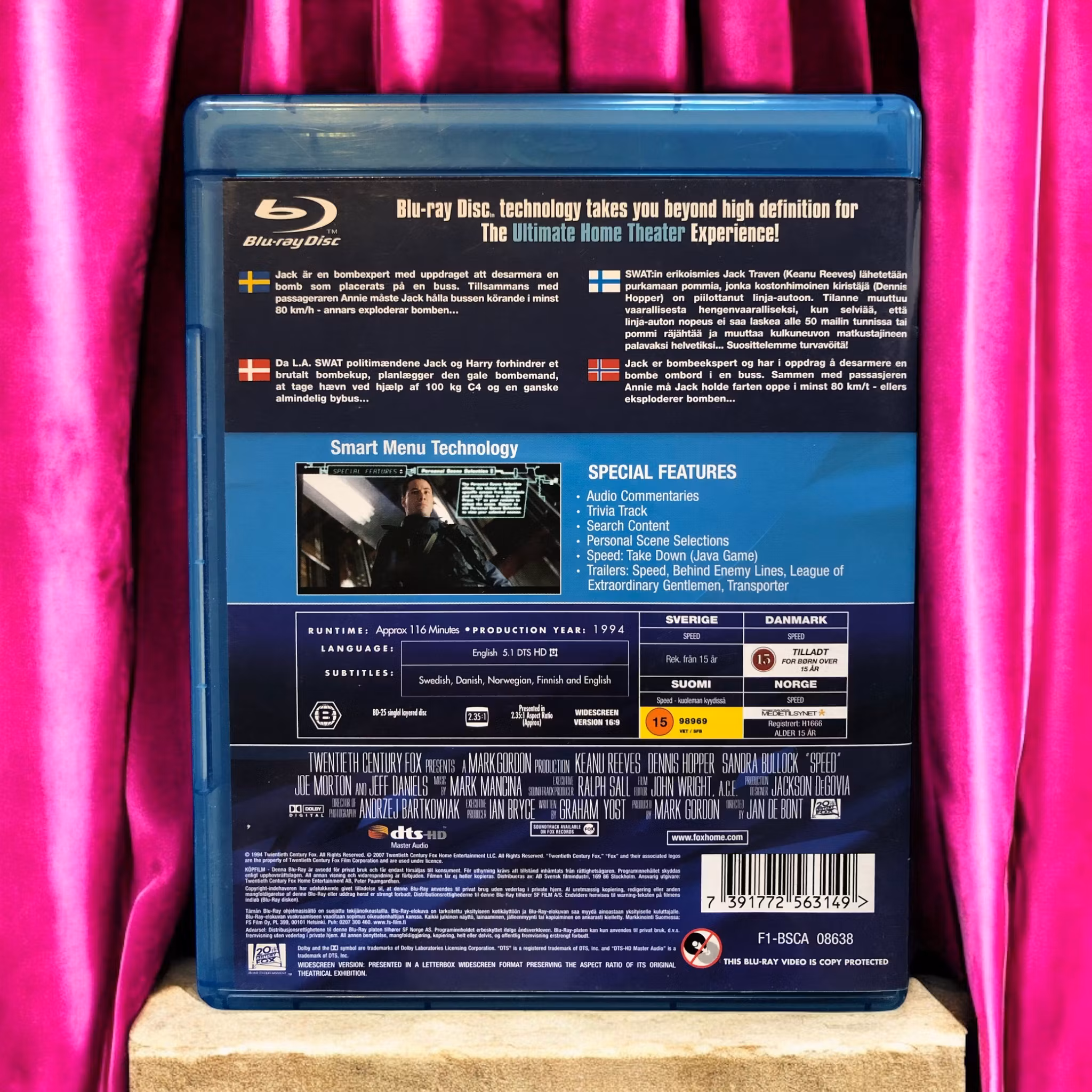 Speed handlar om polisen Jack Traven (Keanu Reeves) som måste rädda passagerare på en buss som har sprängladdningar kopplade till hastigheten. Om bussen går under 50 mph exploderar den. Jack får hjälp av Annie (Sandra Bullock) när de kämpar mot tiden och en galen bombmakare (Dennis Hopper) i en nervkittlande och actionfylld kamp. Filmen är känd för sina intensiva scener och spännande handling.
