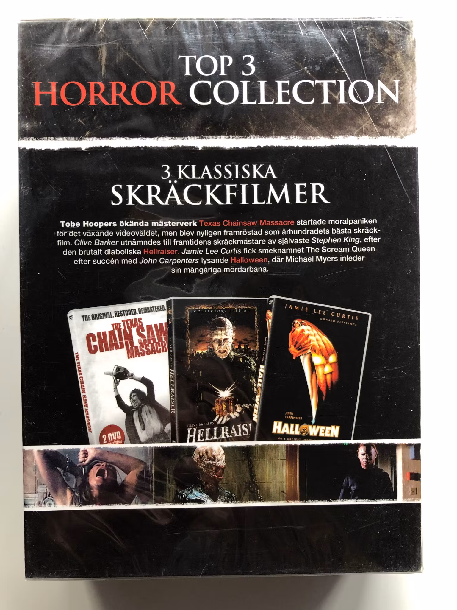 Beskrivning av filmen: "Halloween" är en ikonisk skräck- och thrillerfilm från 1978, regisserad av John Carpenter. Filmen följer Michael Myers, en ung man som mördade sin syster på Halloweenkvällen när han var barn och sedan spenderade åren på ett mentalsjukhus. När han flyr och återvänder till sin hemstad Haddonfield, Illinois, börjar han jaga tonåringen Laurie Strode (Jamie Lee Curtis) och hennes vänner. Carpenter skapade en atmosfär av skräck genom filmens strama regi och det nervkittlande soundtracket. "Halloween" är inte bara känd för att ha etablerat slasher-genren utan också för att ha skapat en av dess mest ikoniska och skrämmande skurkar, Michael Myers, vars mask och kallblodiga natur har gjort honom odödlig i filmhistorien.