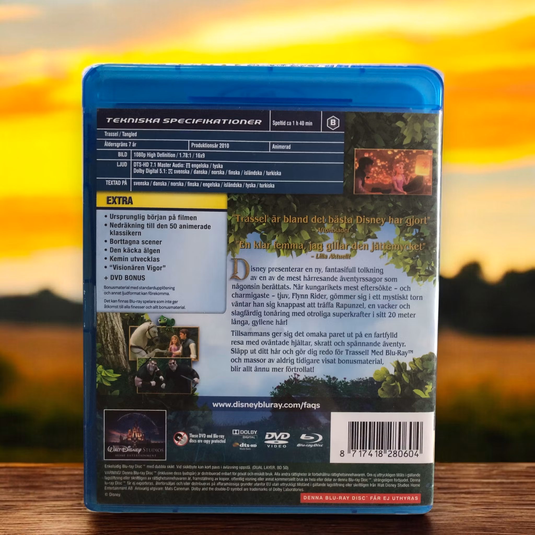 Titel:Tangled Skådespelare:Mandy Moore (Rapunzel), Zachary Levi (Flynn Rider), Donna Murphy (Mother Gothel) Regissör:Nathan Greno, Byron Howard IMDb-betyg:7.7 Beskrivning:"Tangled" är en animerad musikalisk fantasyfilm från 2010 producerad av Disney. Filmen är en modern tolkning av sagan om Rapunzel och följer den långlockiga flickan som har hållits fången i ett torn hela sitt liv. När hon träffar den charmige tjuvaren Flynn Rider ger de sig ut på ett äventyr som förändrar deras liv för alltid. Filmen är känd för sina vackra animationer, minnesvärda sånger och en charmig berättelse om självupptäckt, frihet och kärlek. "Tangled" har blivit en modern Disney-klassiker och älskas av både barn och vuxna.