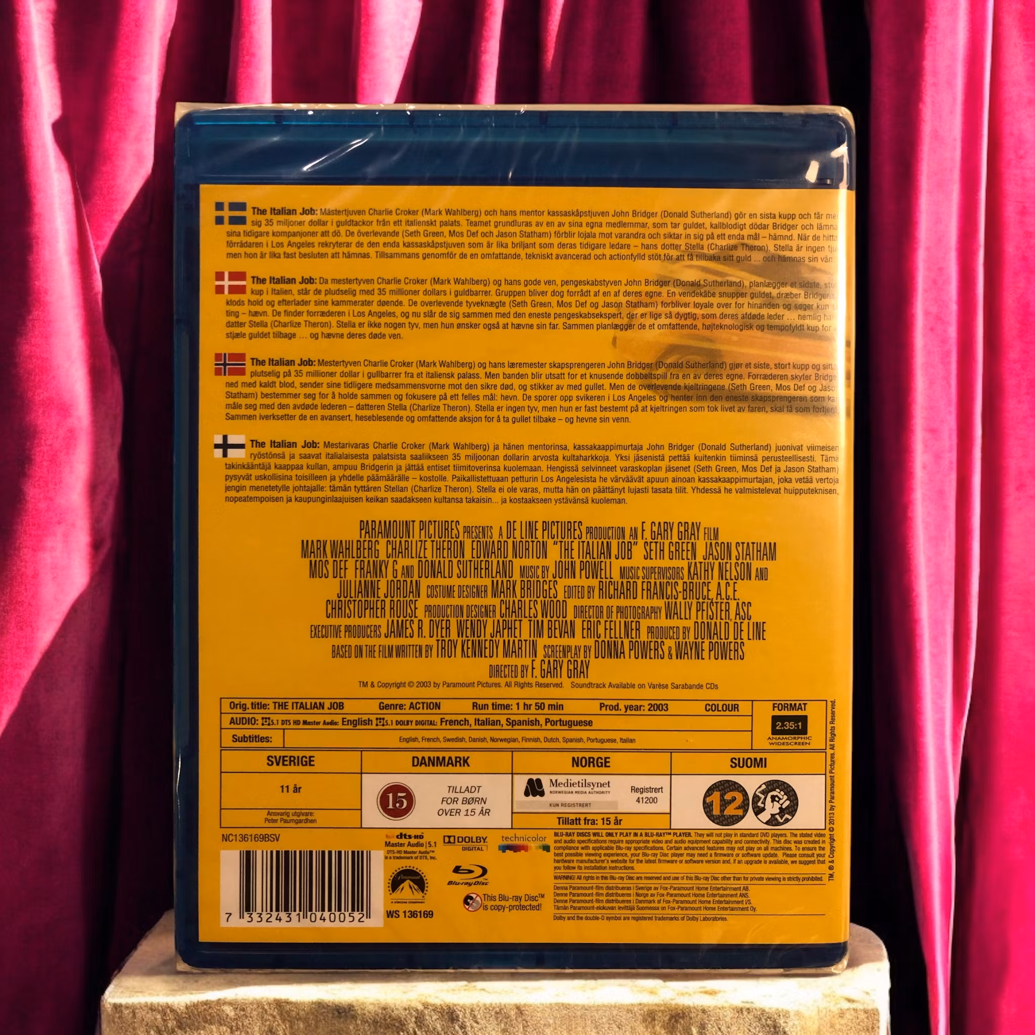 Mark Wahlberg spelar huvudrollen som Charlie Croker, den karismatiske ledaren för rånarligan. Han leds av en ensemble av skickliga skådespelare inklusive Charlize Theron, Jason Statham, Edward Norton, Seth Green och Mos Def, som alla bidrar med sina egna unika färdigheter och personligheter till gruppen.